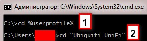 3. Запустите командную строку с правами администратора, командой cd зайдите в каталог, где у вас установлен Unifi Controller (обычно это %userprofile%\Ubiquiti Unifi):