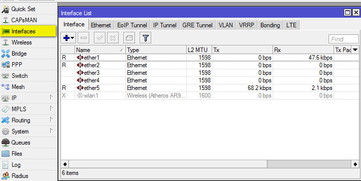 1. Открываем Interfaces, видим такую картину: