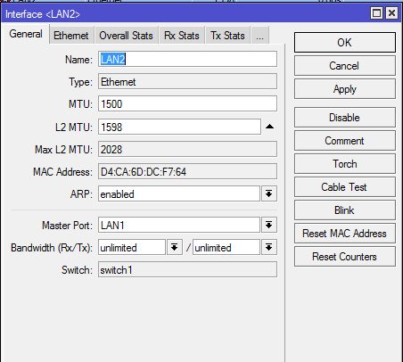Расшифруем то, что было сделано: по умолчанию в роутерах Mikrotik порты не объединены в коммутатор, т.е. не умеют общаться друг с другом. За работу коммутатора отвечает специальный аппаратный чип коммутации, который позволяет разгрузить CPU устройства от коммутации пакетов между портами свитча. Однако работать он будет только в том случае, если будут назначены Master и Slave порты (что и было нами сделано).