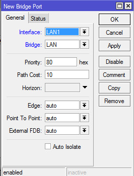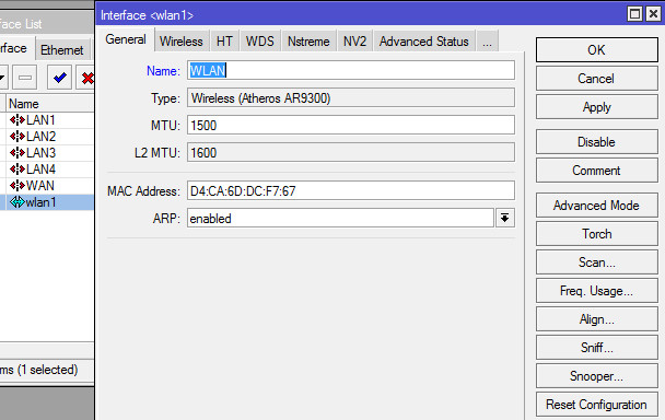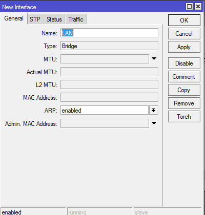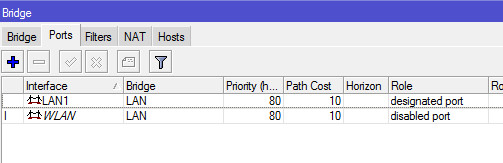 Из кластера портов LAN1 - LAN4 нам достаточно добавить в мост только LAN1, поскольку для LAN2 - LAN4 он уже является мастер-портом (см. п. 3 данного раздела). Соответственно, параметр Interface - LAN1, Bridge - LAN. Повторяем такое же действие для интерфейса WLAN:
