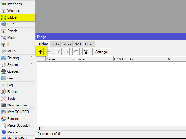 6. Создаем новый Bridge. Для этого открываем пункт меню Bridge и жмем +: