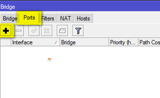 8. Переходим во вкладку Ports, жмем на +, чтобы добавить порты в мост: