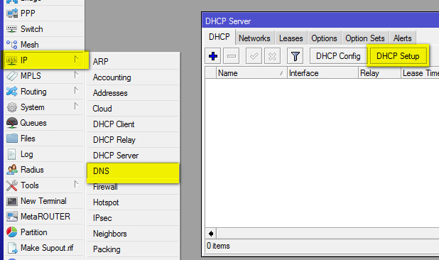 1. Пора настроить DHCP-сервер, который будет раздавать IP-адреса в локальной сети. Для этого открываем IP -> DHCP Server и нажимаем кнопку DHCP Setup: