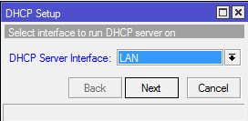 2. Выбираем интерфейс, на котором будут раздаваться IP-адреса. В нашем случае - LAN (мы же хотим раздавать IP-адреса только внутри локальной сети?):