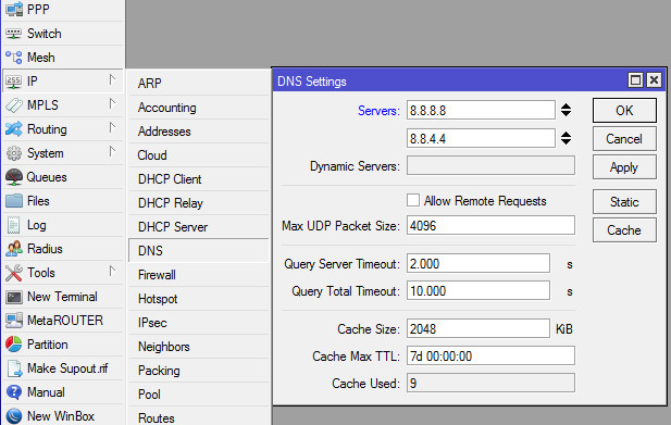 Настройка параметров TCP/IP на Mikrotik