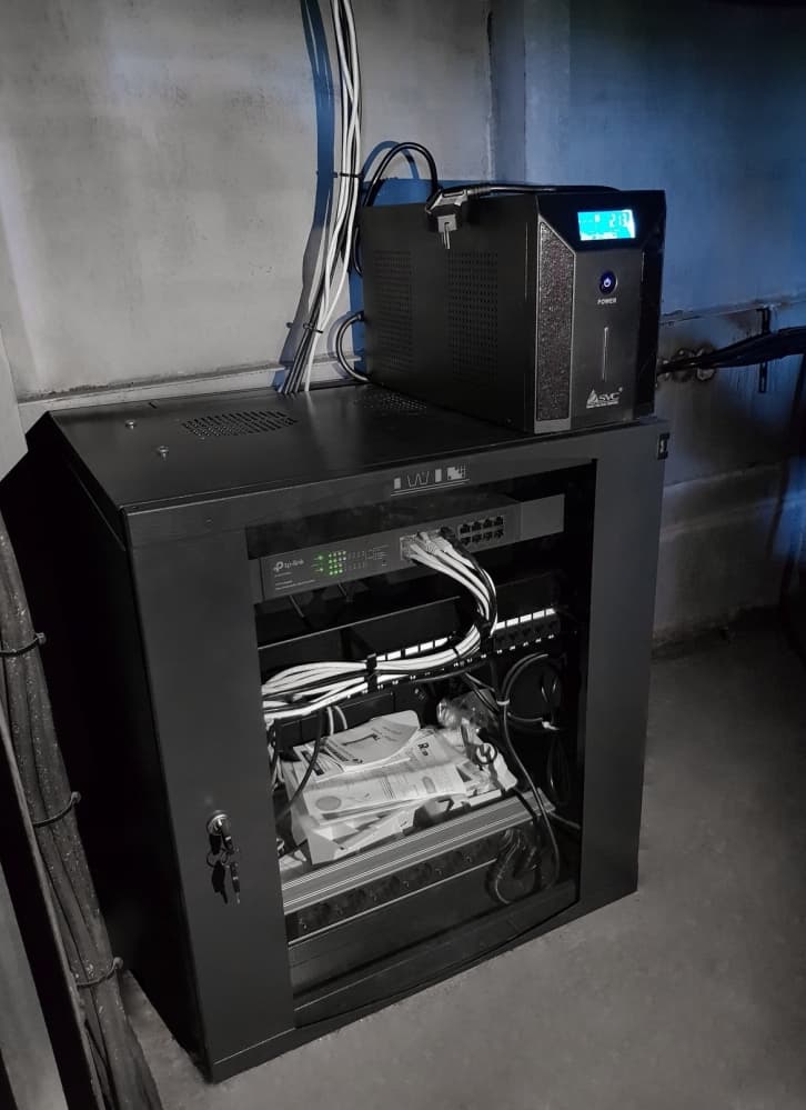 Что мы сделали: монтаж СКС, настройка ЛВС, настройка системы доступа в Интернет на базе агрегированных каналов LTE, грозозащита, монтаж и настройка сети Wi-Fi.