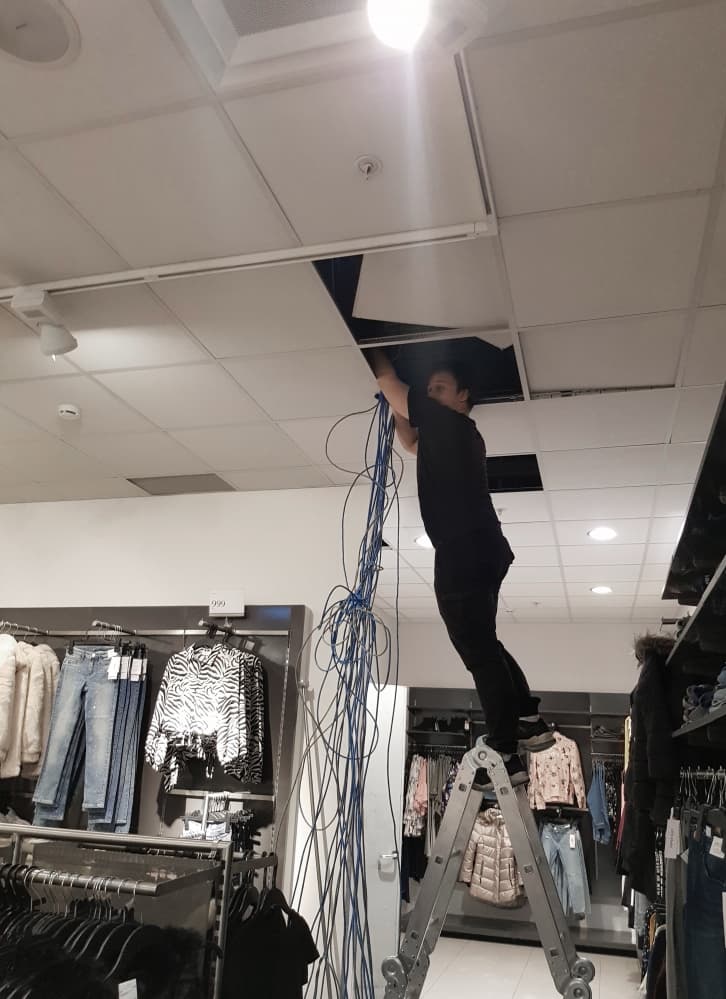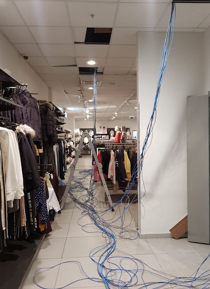 Задача: при открытии нового магазина H&M в одном из московских торговых центров, требовалось за сутки осуществить монтаж СКС, максимально использовав инфраструктуру, оставшуюся от прежнего арендатора павильона.