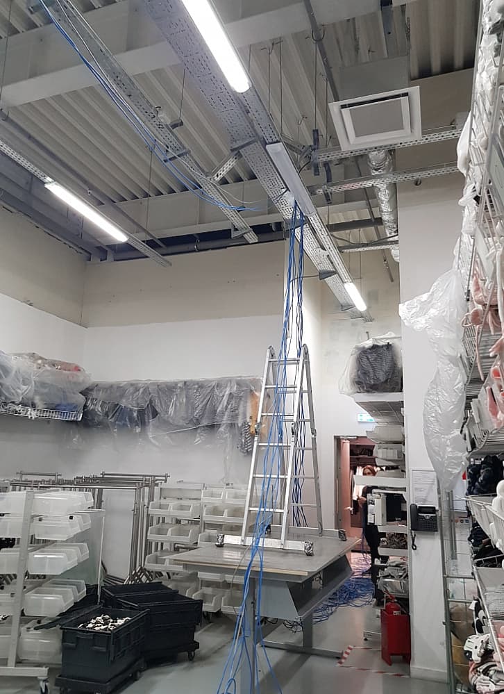 Что мы сделали: монтаж был осуществлен примерно за 12 часов в вечерне-ночное время. К утру объект был сдан заказчику в чистовом виде. Каждая линия связи была протестирована поверенным прибором для сертификации СКС на соответствие категории CAT.5E.