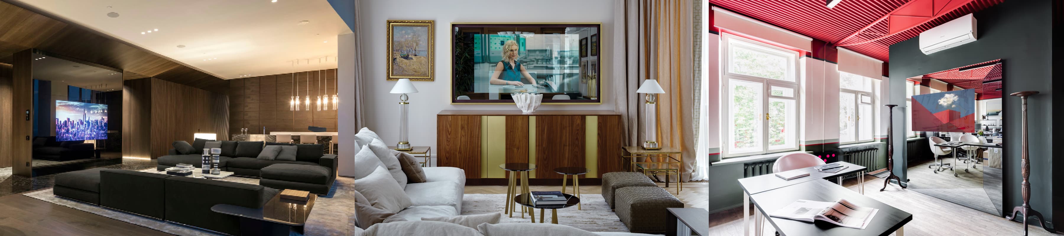 Современные телевизоры уже давно перестали быть просто техникой — сегодня они становятся частью интерьера, подчеркивая стиль и эстетику пространства. Они не только дополняют дизайн, но и позволяют сохранить целостность визуального восприятия помещения, избегая ощущения загроможденности. Интерьерные и зеркальные телевизоры — это идеальное решение для тех, кто ценит гармонию в оформлении и не хочет, чтобы техника выбивалась из общей концепции. Они могут выглядеть как художественные картины, органично вписываться в элементы мебели или вовсе оставаться невидимыми до момента включения, а благодаря современным технологиям обеспечивают высокое качество изображения и удобство использования.